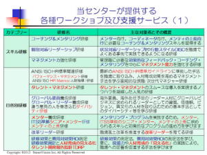 公開コースの案内文が新しくなりました。 @パフォーマンス・コーチング&メンタリング基礎コース Aパフォーマンス・マネジメント実践コース Bメンタリング活用コース C人材育成の見える化とタレント開発報告指針TDRPコース Dタレントマネジメントコース