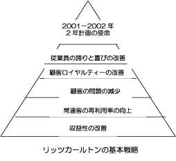 従業員の誇りと喜びの増大により、サービス品質の向上を図り、顧客ロイヤルティーの改善が進み、常連客の再利用率が向上すれば、結果として、利益率の改善を実現出来るとの考えです。 低成長期における経営戦略は、この戦略を基本としている企業が非常に多く見られます。 |