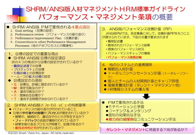それでは、現在のSHRM/ANSI版パフォーマンス・マネジメントでは、どのような点を規定しているのでしょうか?