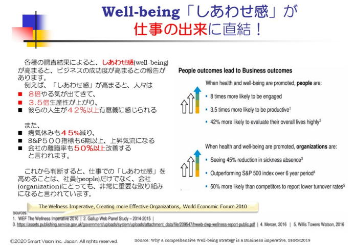 日本でも、健康経営が注目され、「しあわせ施策」を重点的に打ち出している企業が増えていることは、大変好ましいことです。