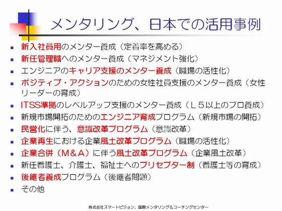 米国の国際メンタリング学会で、5回発表実績のメンタリングの達人 国際メンタリング&コーチングセンター代表 株式会社スマートビジョン 代表取締役 |