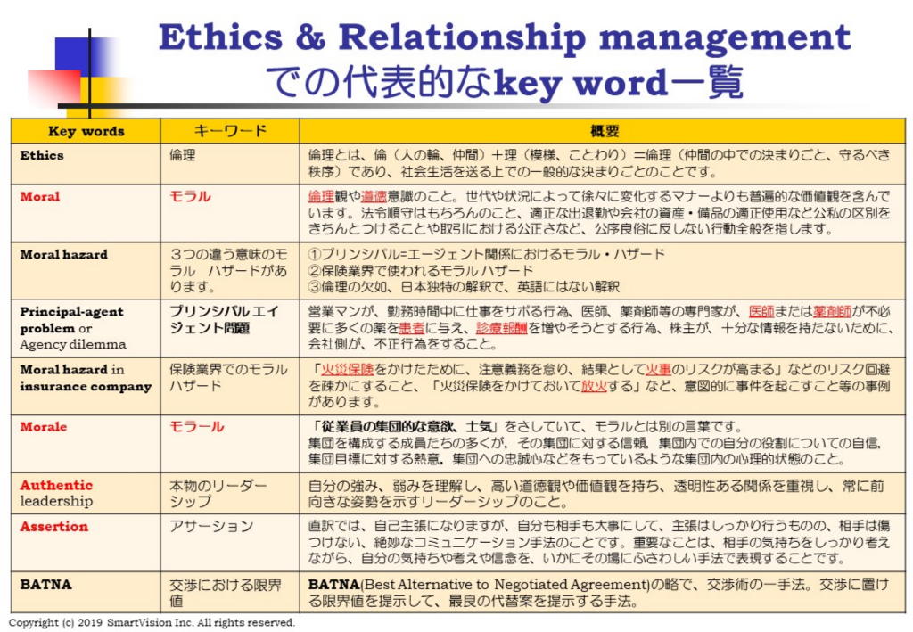 再度、「注目を集める時代になった」ということですね! 「人生は、何回でも挑戦してみるものです!」 ◆開催日:6月開催:2019/6/19(水) 19:00-21:30 ◆テーマ:グローバル人材マネジメントのグローバル標準になった、 6月テーマ:倫理概念 、もめ事の解消と 交渉プロセスの基本 6月は、倫理概念 、揉め事の解消と 交渉プロセスの基本をテーマにします。 SHRMコンファレンスでも、倫理概念、揉め事の解消は、一番ホットなテーマになります。 例え、組織の中では、倫理概念があっても、それを守らない人たちが沢山います。
