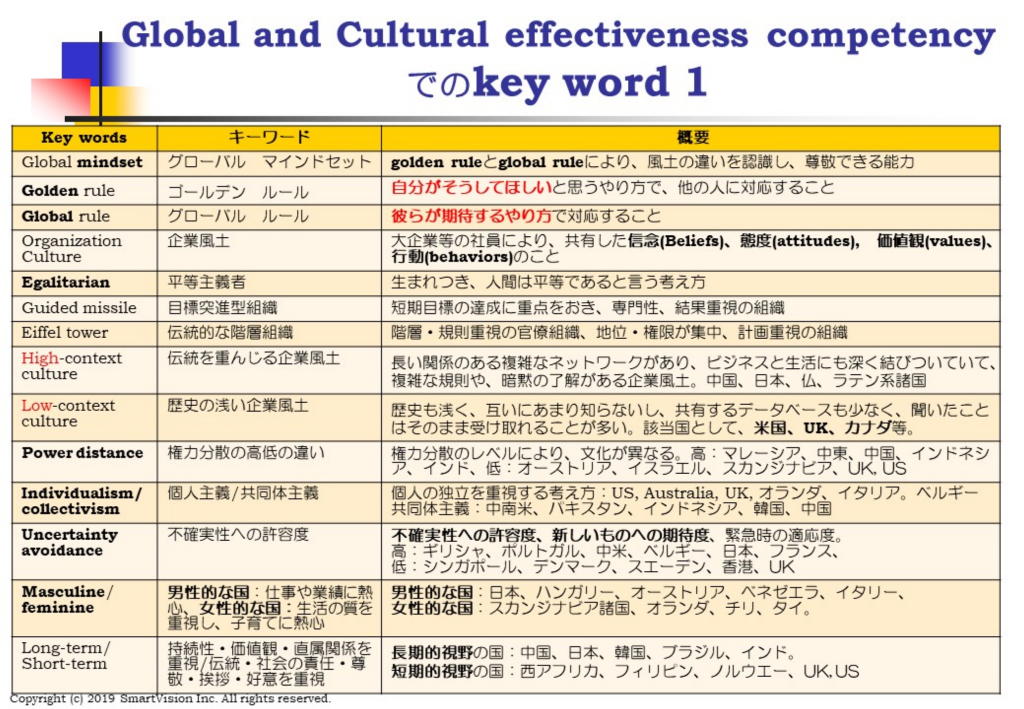 これが的外れでは、折角のグローバル人財の採用活動が無駄になります。 SHRMコンピテンシーをきちんと理解して、優秀なグローバル人財にも、魅力あるふれる会社だと思ってもらえるようになりたいものです。 --------------------------------------------------------------------------