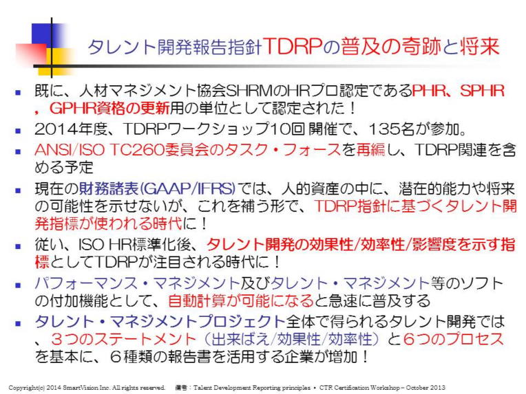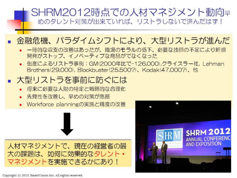 既に、日本のグローバル企業でも、パフォーマンス・マネジメントやタレント・マネジメントのソフトの導入は着実に進んでいます。 しかし、ソフトが導入されても、現場マネジャーやマネジャーの理解が進まず、一向に導入が進まない企業が多々あります。 この導入をスムースに進めるには、従来のマネジャーの意識改革を全社的に進める必要があります。 これからは、日常業務の中でフィードバックを積み重ね、その集大成として、人事考課を行い、更なる挑戦を意識づけることが求められます。これをスムースに実現するパフォーマンス・マネジメントの考え方の定着を実現するため、すくなくとも、新任マネジャーには、マネジャー向けパフォーマンス・マネジメント研修が必須になります。 更には、マネジメントの中でのタレント開発の重要性を意識づけ、どのように実施するかを学ぶのがタレント・マネジメント研修です。ソフトの使い方を知っても、これをどう活かすかは、全く別だからです。 |